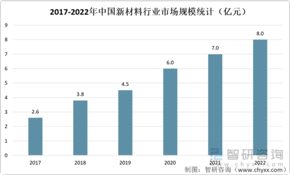 2017-2022年中国新材料行业市场规模����� �������Ƴ������������ �������Ƴ������������ �������Ƴ������������ �������Ƴ�������统计